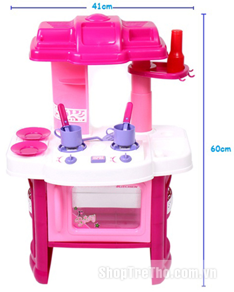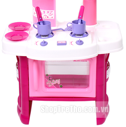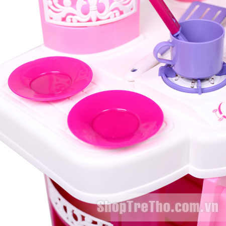 Bộ đồ chơi Kitchen set dành cho bé gái rất đẹp và hoành tráng, khi bật nút ON, sẽ sáng đèn ở bếp như có lửa và có tiếng xào nấu y như thật.