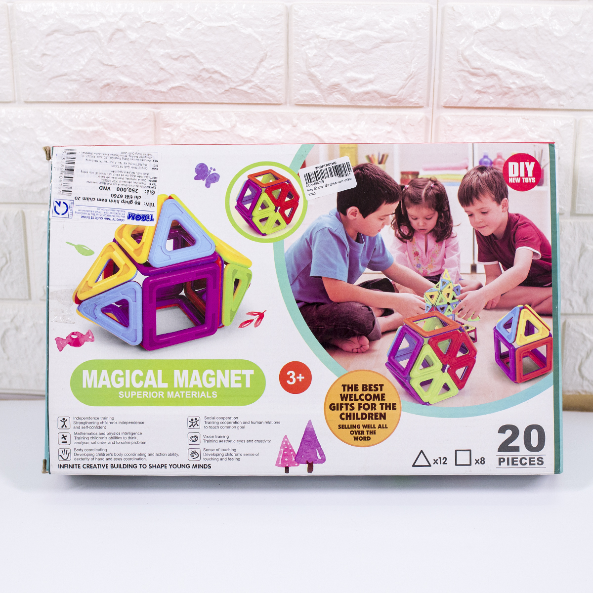 Bộ đồ chơi lắp ghép nam châm 6760 gồm 20 miếng ghép hình chữ nhật hoặc hình tam giác có gắn nam châm nên dễ dàng liên kết cũng như xếp thành hình theo ý muốn, trí tưởng tượng của bé. Đồ chơi sẽ là món quà giáo dục mang tính trí tuệ dành cho bé từ 3 tuổi trở lên.