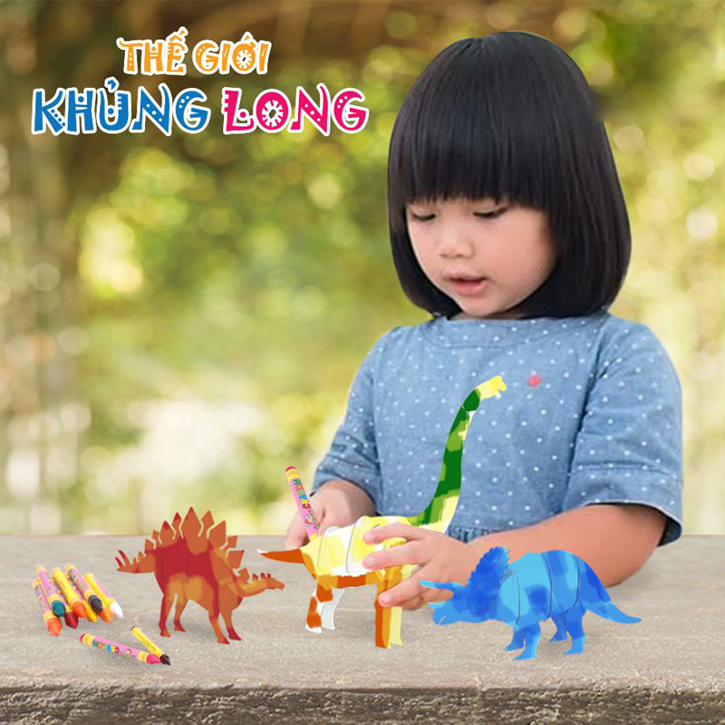 Bộ đồ chơi lắp ghép và tô màu: Thế giới Khủng Long có thể được dùng như thiết bị hỗ trợ học tập đắc lực cho bé trong các môn học như khoa học, sinh học và lịch sử. Sản phẩm là đồ chơi trí tuệ cho bé vừa có thể lắp ráp, vừa có thể tô màu, đồng thời hình dung được về hình dáng của loài khủng long đã tuyệt chủng.