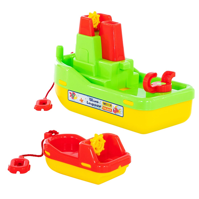 Bộ đồ chơi tàu kéo gồm 2 chiếc: 1 tàu nhỏ và 1 tàu lớn