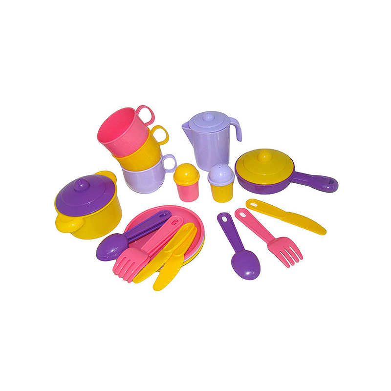 Bộ đồ chơi nhà bếp có đầy đủ các dụng cụ như muỗng, đĩa,...