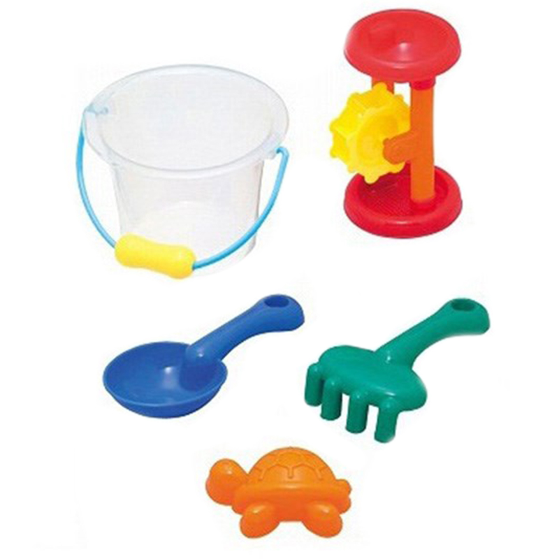 - Bộ đồ chơi gồm 5 món: Xẻng cào, xẻng xúc, guồng quay, xô đựng và một chú rùa xinh xắn đi kèm.