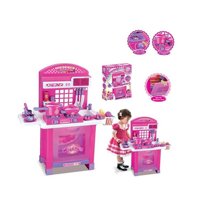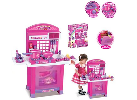 - Bộ đồ chơi nấu ăn cao cấp cho bé 008-55 được thiết kế bởi màu hồng chủ đạo và màu tím mà các bé yêu thích, với đầy đủ những dụng cụ nấu ăn cơ bản thường ngày giống các mẹ: bàn bếp, bếp ga, ấm chén, dao, thìa, đồ ăn ...