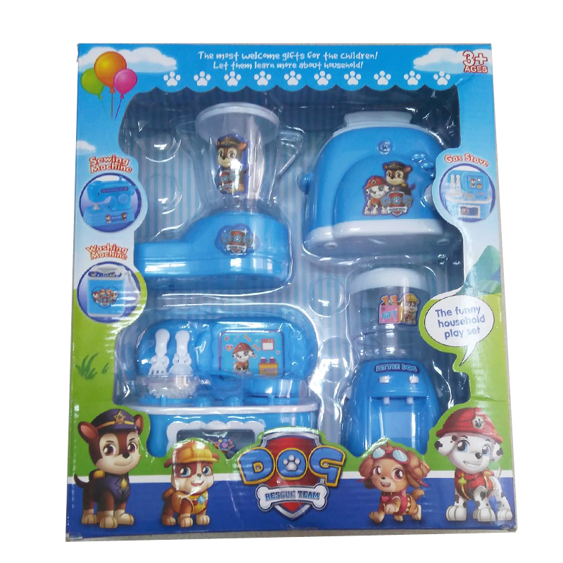 Bộ đồ chơi nhà bếp in hình chó cứu hộ gồm 4 dụng cụ gia dụng: máy xay sinh tố, máy bánh mì, máy lọc nước, bếp ga với thiết kế giống mô hình thật, cho bé được trải nghiệm các trò chơi "đóng vai" tập làm các công việc nhà. Thông qua việc chơi đùa, bé sẽ phát triển khả năng vận động, trí tưởng tượng và học cách nhận biết và sử dụng các đồ vật xung quanh mình. Sản phẩm được làm từ chất liệu nhựa an toàn, không chứa chất độc hại nên bố mẹ có thể yên tâm khi lựa chọn cho bé.