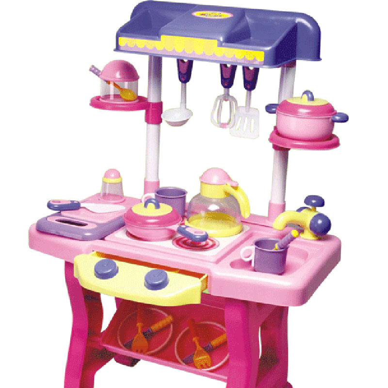 Sản phẩm gồm 1 bếp đứng với 4 bếp, có vòm và thanh treo 4 móc, bồn rửa bát, bộ cốc, đĩa, dĩa, dao cho 2 người, bình đựng nước, thớt, dao, 1 nồi, 1 chảo. Chỉ cần một ít thức ăn nữa là các bé gái có có thể trổ tài.