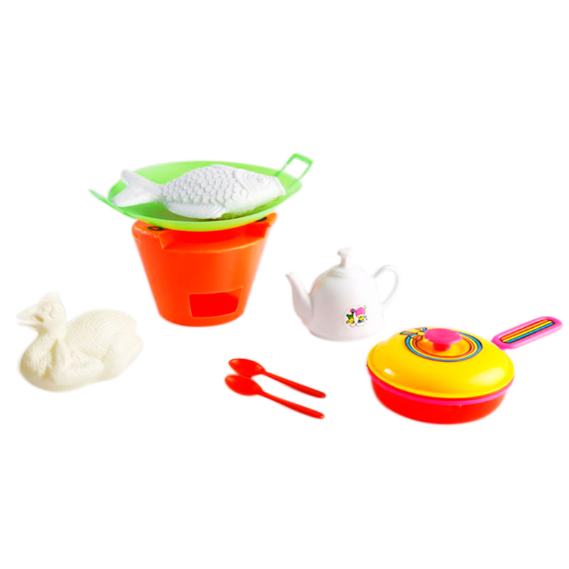 - Sản phẩm gồm: bếp lò, chảo, muỗng, ấm trà, cá, gà...để bé tập chế biến món ăn như mẹ