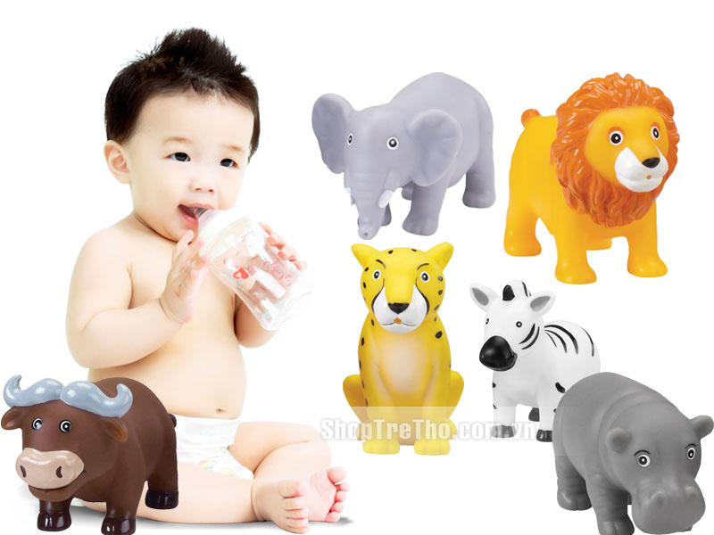 Bé có thể vừa tắm vừa chơi với các bạn hổ, voi, sư tử... giúp cho giờ tắm thêm phần vui nhộn.
