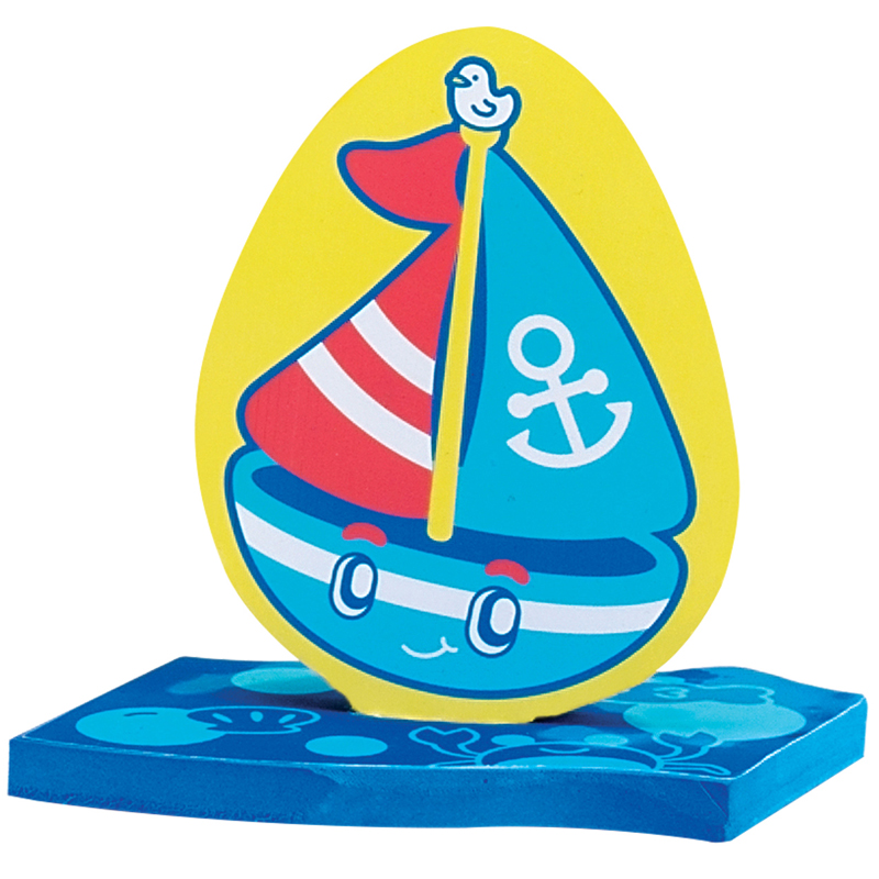 Gồm 20 miếng xốp hình phương tiện hàng hải và sinh vật biển gắn với nhau để tạo thành tàu biển 3D nổi được trên mặt nước.