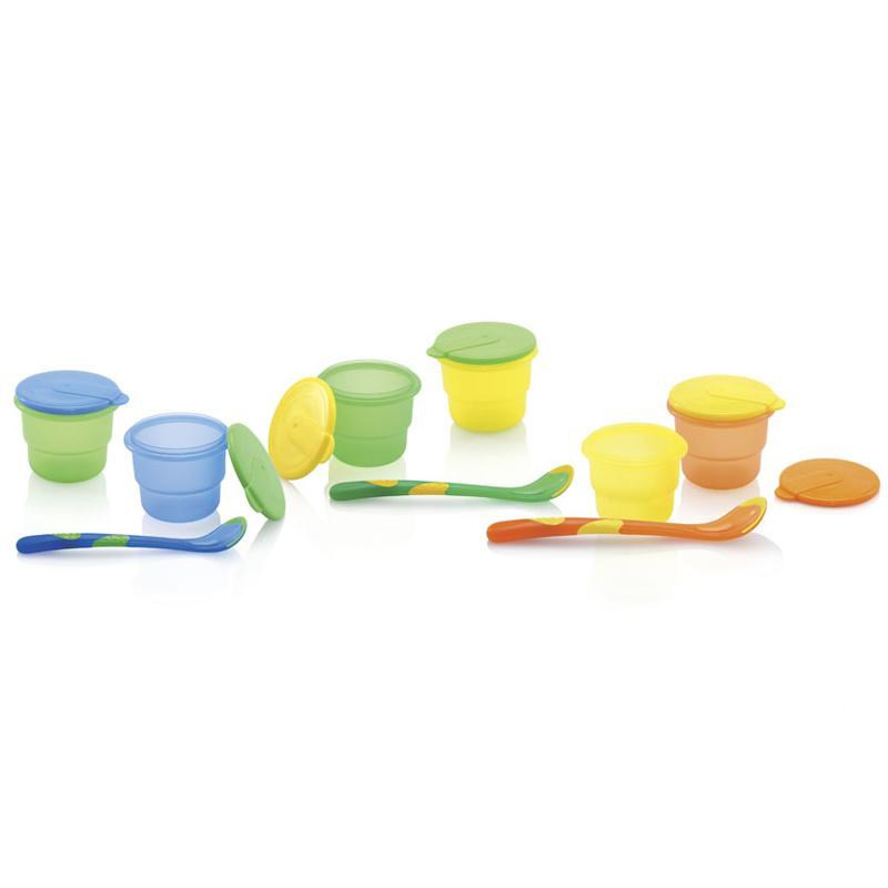 Bộ đồ tập uống Nuby 310 kích thước vừa phải để đựng thức ăn, đồ uống cho bé. An toàn khi sử dụng với lò vi sóng, máy rửa chén và tủ đông. Nắp và bình có màu sắc khác nhau rất đẹp mắt