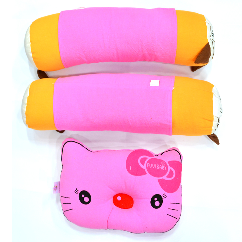 Bộ gối nằm & gối ôm FuviBaby A-02SS với chất liệu mềm mại, màu sắc nổi bật, mang đến cho bé giấc ngủ ngon và sâu, ít bị giật mình. Bộ sản phẩm gồm 2 gối ôm (mẹ có thể dùng để chèn 2 bên cho trẻ khi ngủ) và 1 gối nằm được đựn trong túi bằng nhựa, thích hợp làm quà tặng cho các bé vào dịp thôi nôi, mới sinh.