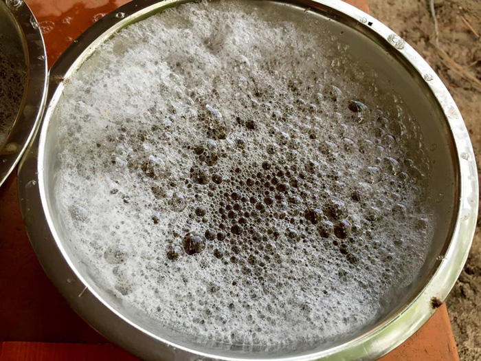 Lưu ý: các bạn đừng căn cứ vào lượng bọt mà đánh giá sạch bẩn. Bồ hòn không bọt nhiều như xà bông, nước giặt, nước rửa bát có chứa chất tạo bọt độc hại.