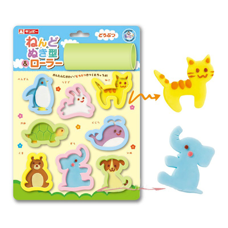 - Bộ sản phẩm gồm: 1 con lăn đất nặn và 8 khuôn tạo hình: chim cánh cụt, thỏ, mèo, rùa, cá voi, gấu, voi, chó.
