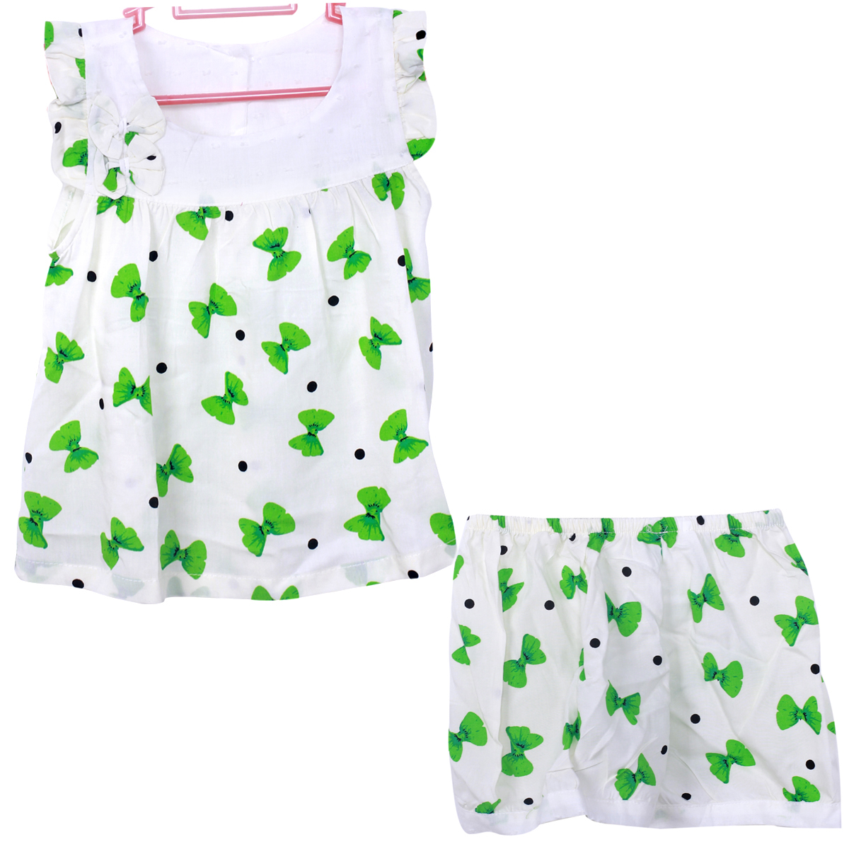 Bộ lanh bé gái (1-6T) gồm 1 áo chữ A sát nách và 1 quần cộc lưng thun được may từ chất vải lanh nhẹ và mát, phù hợp cho bé mặc khi thời tiết nắng nóng hay trời mùa hè. Chiếc áo có cổ tròn, có nơ đính kèm xinh xắn. Thân áo được chia làm 2 phần: phần trên gọn gàng, phần dưới xòe duyên dáng, tôn thêm nét đáng yêu cho trẻ.