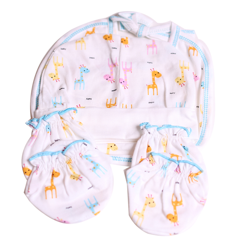 Bộ sản phẩm bao gồm mũ, bao chân tay và yếm cho bé sơ sinh