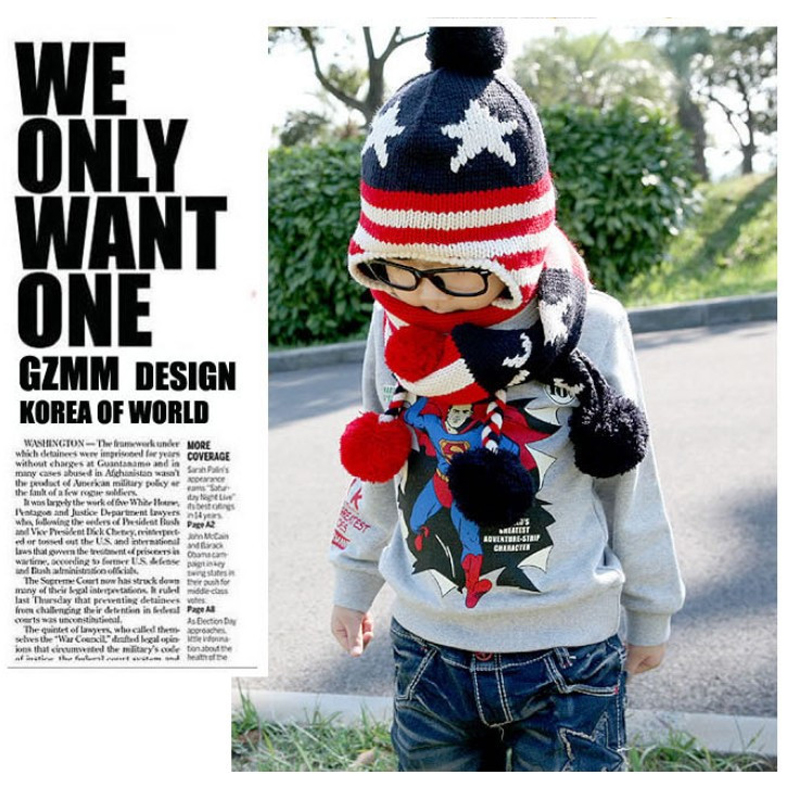 Khăn dài, mũ có tai che ấm áp, kèm theo họa tiết nổi bật làm điệu cho bé.
