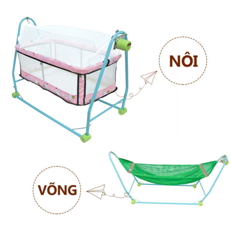 - Bên cạnh đó, lồng nôi còn được trang bị mùng chống muỗi ôm sát vào 2 bên nôi, giúp bé ngon giấc mỗi ngày mà không còn nỗi lo bị muỗi đốt.