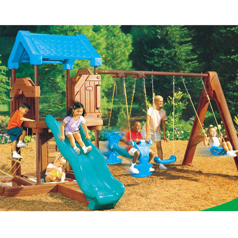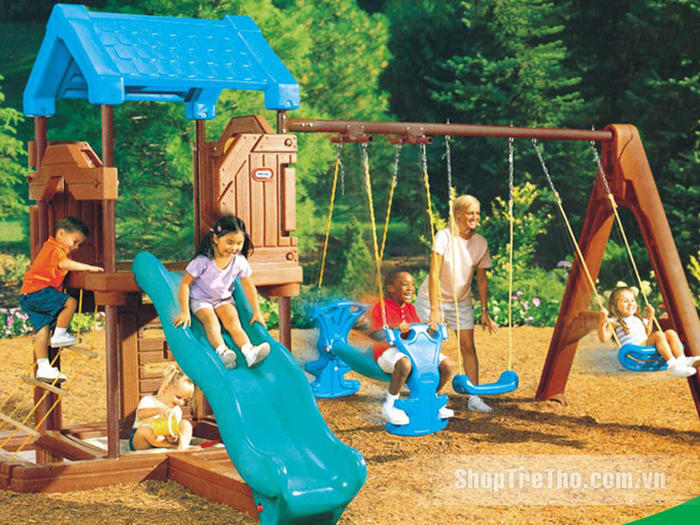 - Bộ sản phẩm gồm: 1 nhà cầu trượt, 1máng trượt, 2 xích đu, 2 bập bênh