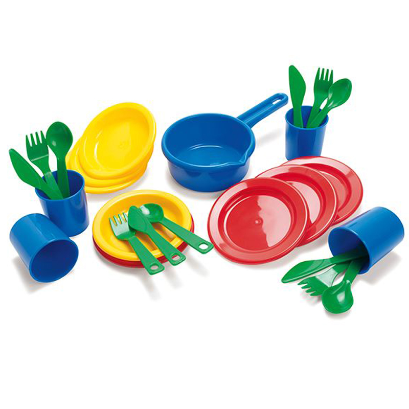 Những chiếc thìa, dĩa, dao, cốc, đĩa nhiều màu sắc để bé chơi trò nấu ăn với bạn bè hay bố mẹ