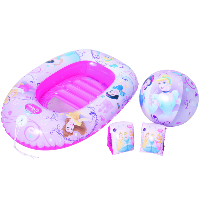 Bộ phao bơi 3 in 1 Disney princess 91054B kết hợp bộ 3 giữa thuyền phao, bóng bới, phao tay giúp bé an toàn và vui chơi thoải mãi trong mùa hè oi bức