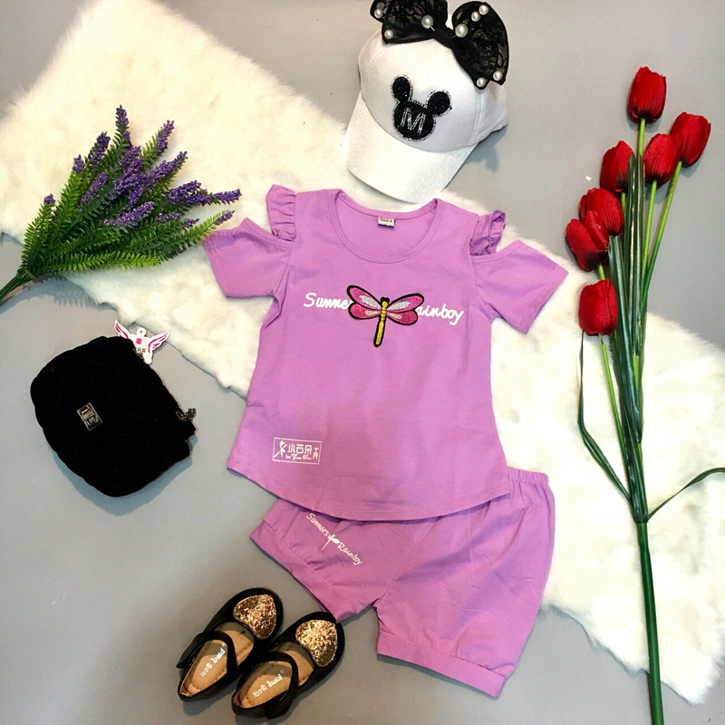 Bộ quần áo cộc bé gái hở vai SB42 (1-4T)