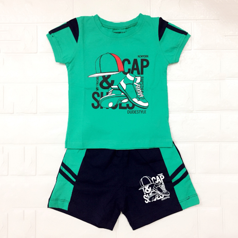 Bộ quần áo cộc tay bé trai in hình mũ giày (1-5T) - thiết kế mùa hè cho bé