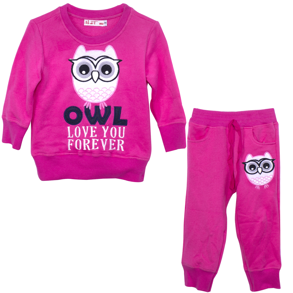 - Bộ quần áo cho bé gái thêu đắp cú VTE011 được may từ chất liệu nỉ bông mềm và dày nên giữ ấm tốt cho bé trong những ngày trời lạnh