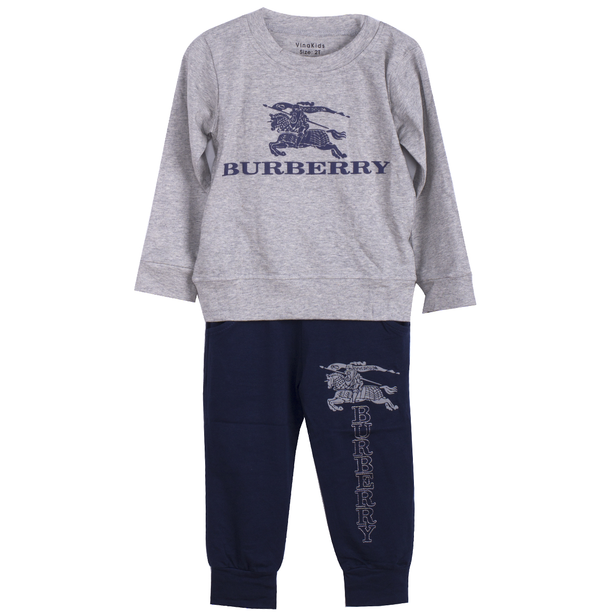 Bộ quần áo bé trai Burberry thu đông được may từ chất liệu thun mềm mại, thích hợp cho bé mặc khi thời tiết chuyển mùa. Áo dài tay kết hợp quần dài in hình họa tiết Burberry vừa mang đến cho bé vẻ năng động, khỏe khoắn, vừa giúp bé tránh những cơn gió se se lạnh trong mùa thu và mùa đông. Sản phẩm có nhiều màu dành cho bé trai từ 1 - 7 tuổi.
