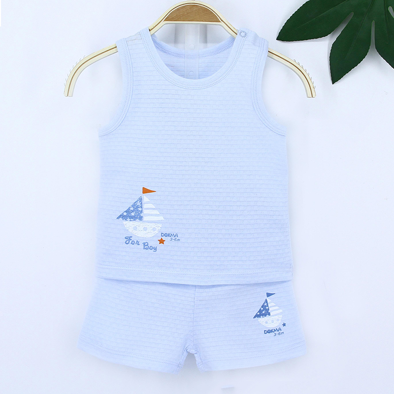 Bộ sơ sinh ba lỗ bé trai Dokma DB242 (xanh) với chất vải cotton organic luôn giữ vững các ưu điểm thông thoáng, mềm mại, đàn hồi tốt và không bai xù qua nhiều lần giặt. Kiểu quần áo ba lỗ phù hợp cho các bé trai mặc vào thời tiết mùa hè oi nóng.