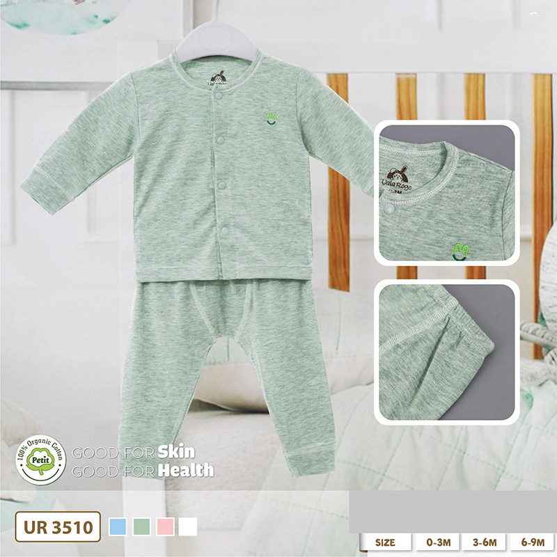 Bộ sơ sinh cúc giữa Petit Uala UR3510 được dệt bằng sợi melange sẽ tạo nên hiệu ứng màu sắc đẹp pha trộn nét độc đáo. Độ nén thủng cao của chất liệu này có tác dụng ngăn hiện tượng bùng vải, giúp bề mặt nguyên liệu xốp, mềm và nhẹ thoáng mà vẫn đảm bảo giữ ấm. Công nghệ dệt hai mặt đặc biệt khiến bề mặt vải bên trong luôn trơn nhẵn, mịn màng tạo cảm giác thoải mái, êm dịu, đặc biệt thích hợp cho các bé sơ sinh.