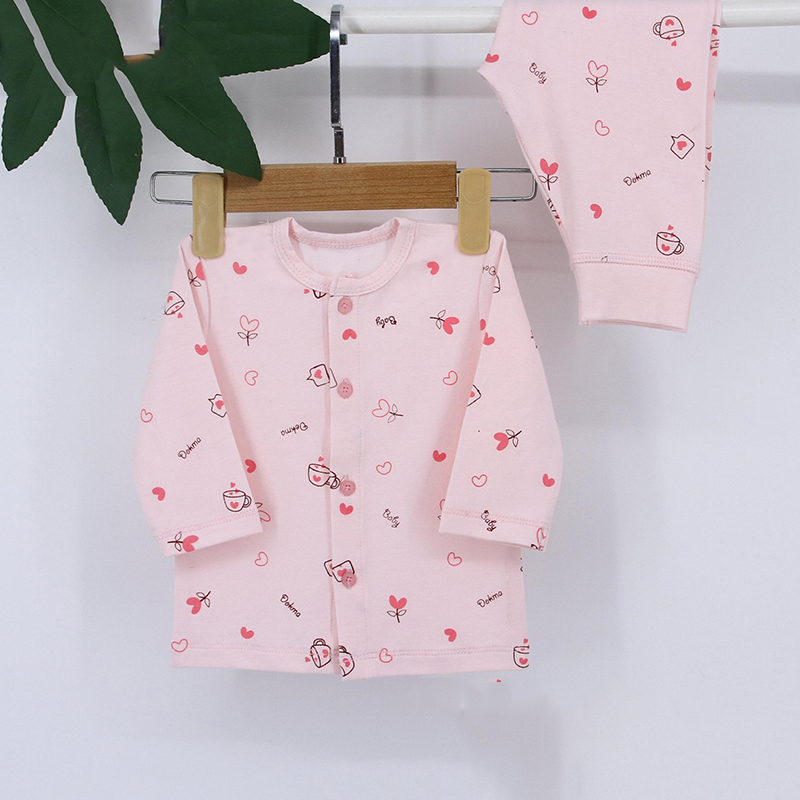 Bộ sơ sinh Dokma hồng bé gái dài tay với thiết kế khuy cài giữa
