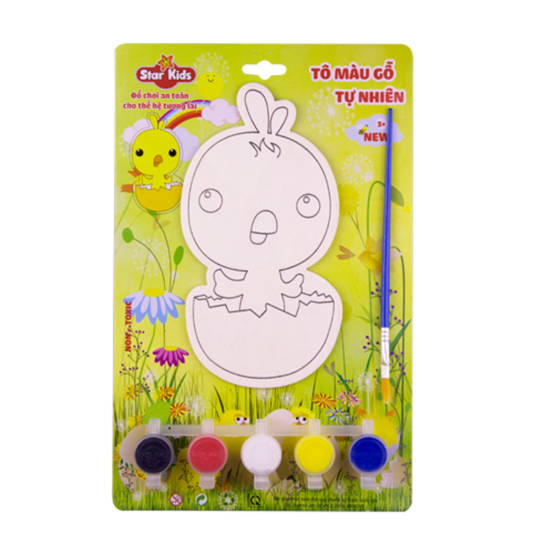 Bộ tô màu gỗ tự nhiên Star Kids K203 gồm 1 hình gà con bằng gỗ, 1 cọ vẽ và 5 màu cơ bản để bé có thể tự mình hoàn thiện bức tranh. Sản phẩm được làm từ gỗ tự nhiên, giúp bé rèn luyện kỹ năng tô màu, tập tính cẩn thận và hoàn thành tốt công việc, đồng thời bé có thể phát huy khả năng sáng tạo khi kết hợp nhiều màu khác với nhau.