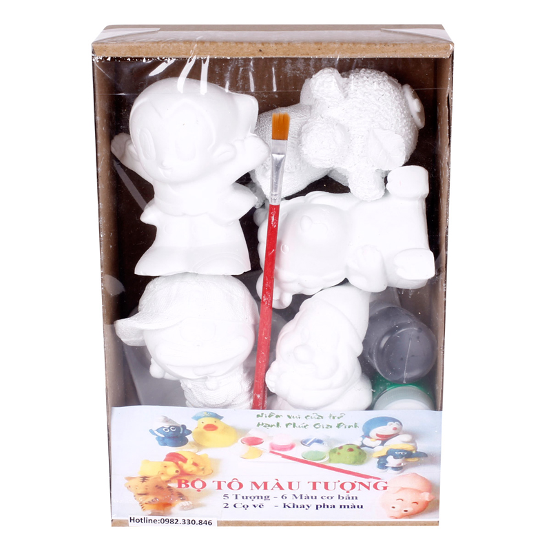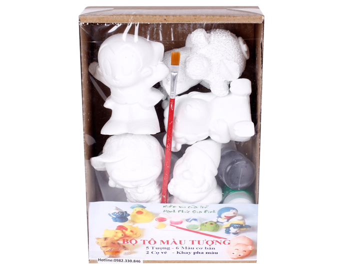 - Bộ gồm: 5 tượng + 6 màu vẽ + 2 cọ vẽ + 1 khay pha màu