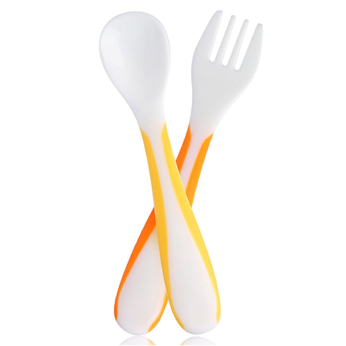 Bộ thìa dĩa tập ăn được thiết kế phần đầu thìa hơi nghiêng giúp bé dễ dàng cầm nắm, có thể tự xúc hay gắp thức ăn mà không sợ làm rơi.