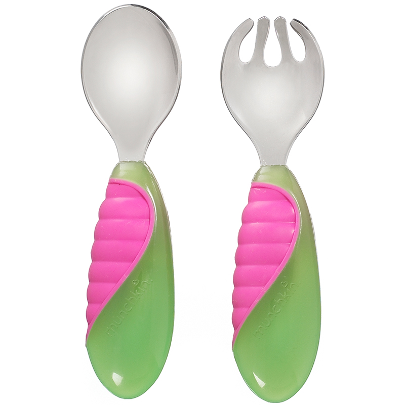 Bộ thìa tập ăn Munchkin màu hồng kết hợp với màu xanh dương