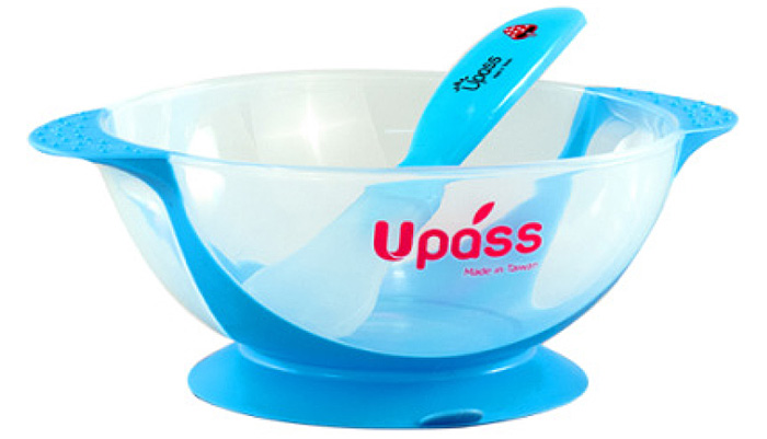 Bộ thìa và bát có đế chân không, chống đổ UPASS được làm từ chất liệu nhựa cao cấp an toàn cho bé