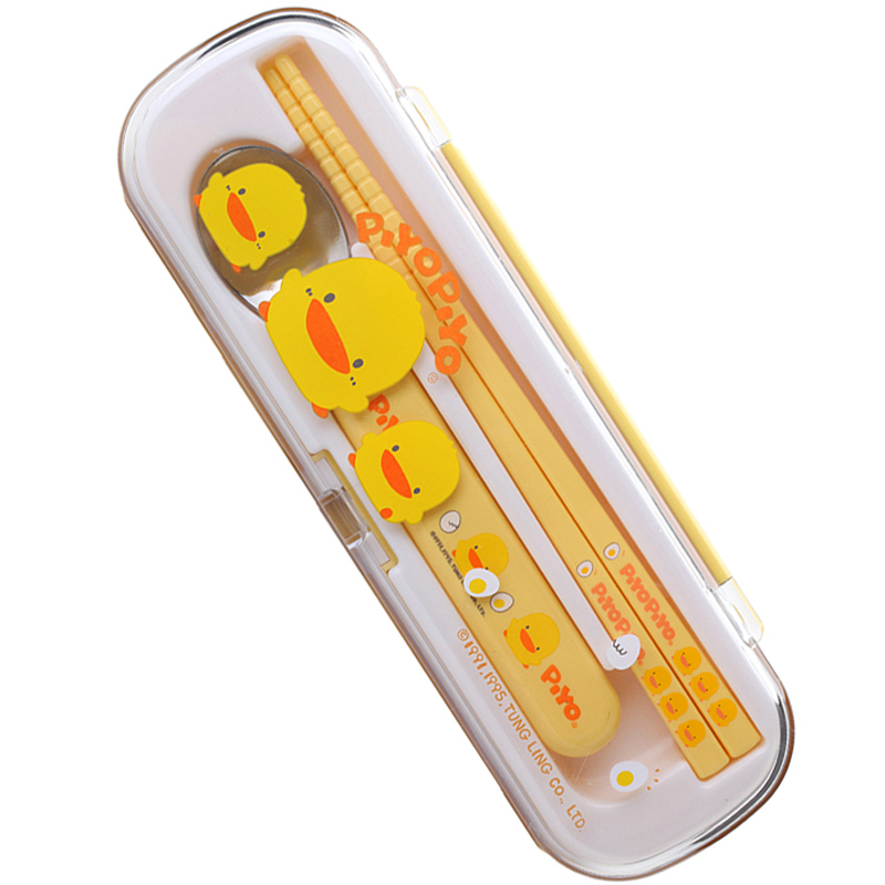 Bộ thìa & đũa có hình vịt con PiyoPiyo thích hợp với việc cho bé yêu tập ăn.