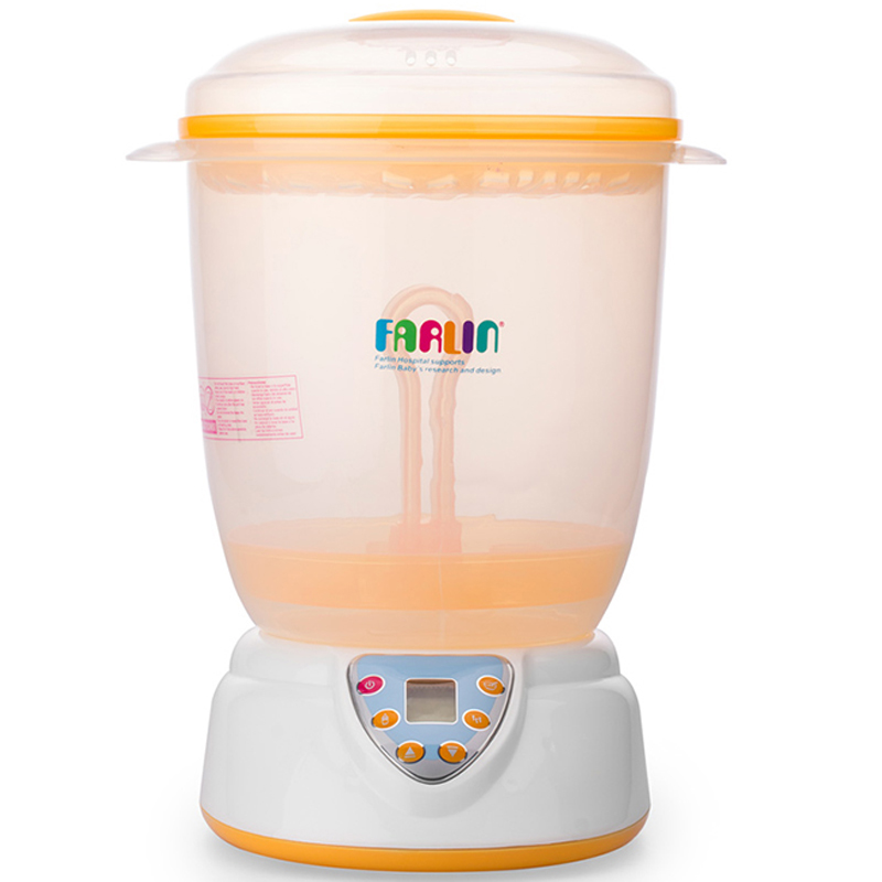 Bộ tiệt trùng bình sữa tự động bằng hơi 4 trong 1 Farlin TOP- 214 nhiều chức năng và được làm với vật liệu an toàn. Các chức năng cơ bản của sản phẩm có thể kể đến: giữ ấm thức ăn, sữa cho bé, tiệt trùng bình sữa và chức năng vắt cam. Máy sử dụng cơ chế tiệt trùng bằng hơi nước hiện đại và an toàn.