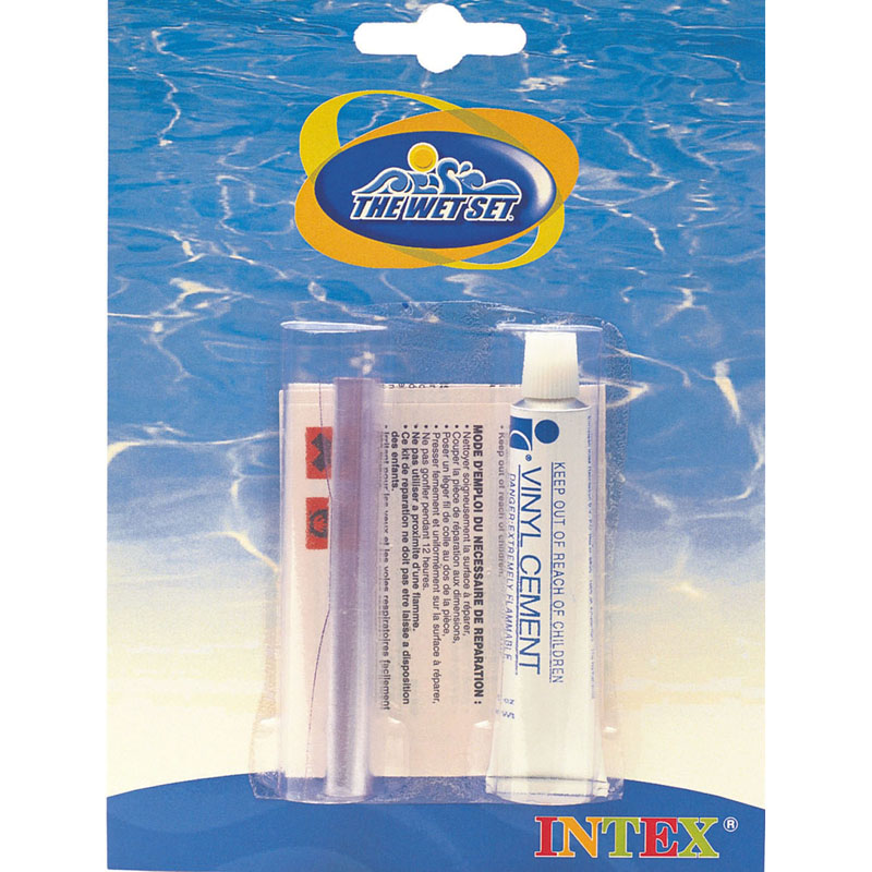 Gồm 1 tuýp keo vá và một cuộn băng dán chuyên dụng để vá phao bơi, bể phao