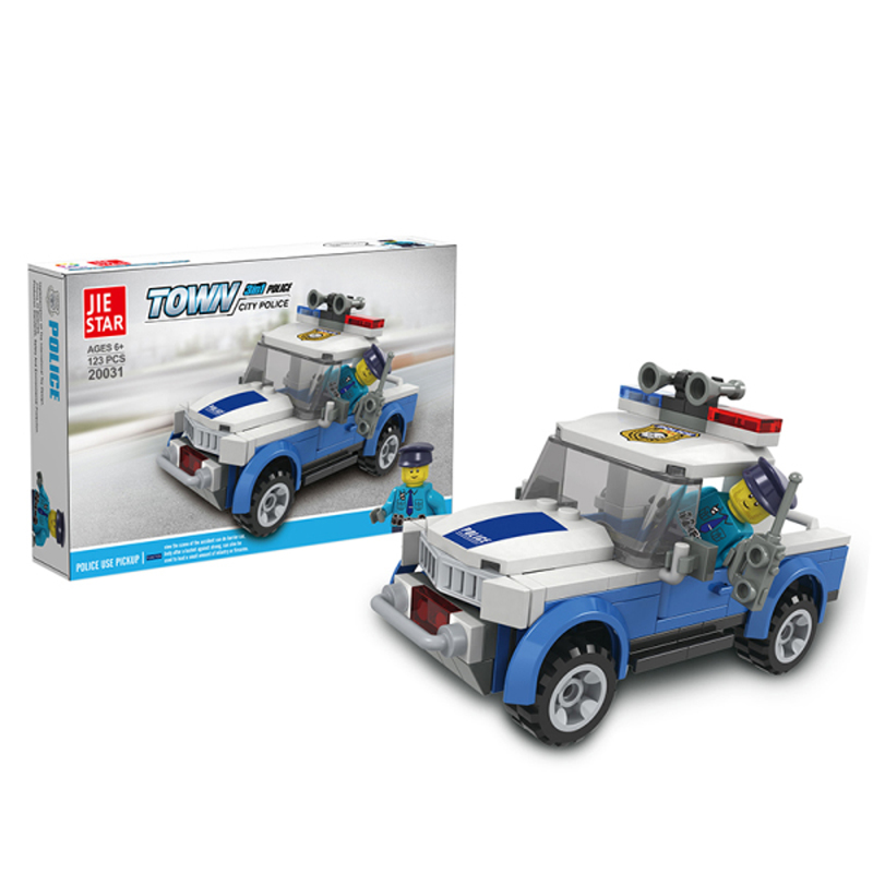 Bộ xếp hình Jie Star 20031 - Xe cảnh sát gồm 123 miếng ghép bằng nhựa an toàn, để bé ghép thành chiếc xe cảnh sát. Đồ chơi lắp ráp giúp bé phát triển trí tuệ, tư duy cũng như khả năng sáng tạo, bé có thể xây dựng nên những câu chuyện của riêng mình.