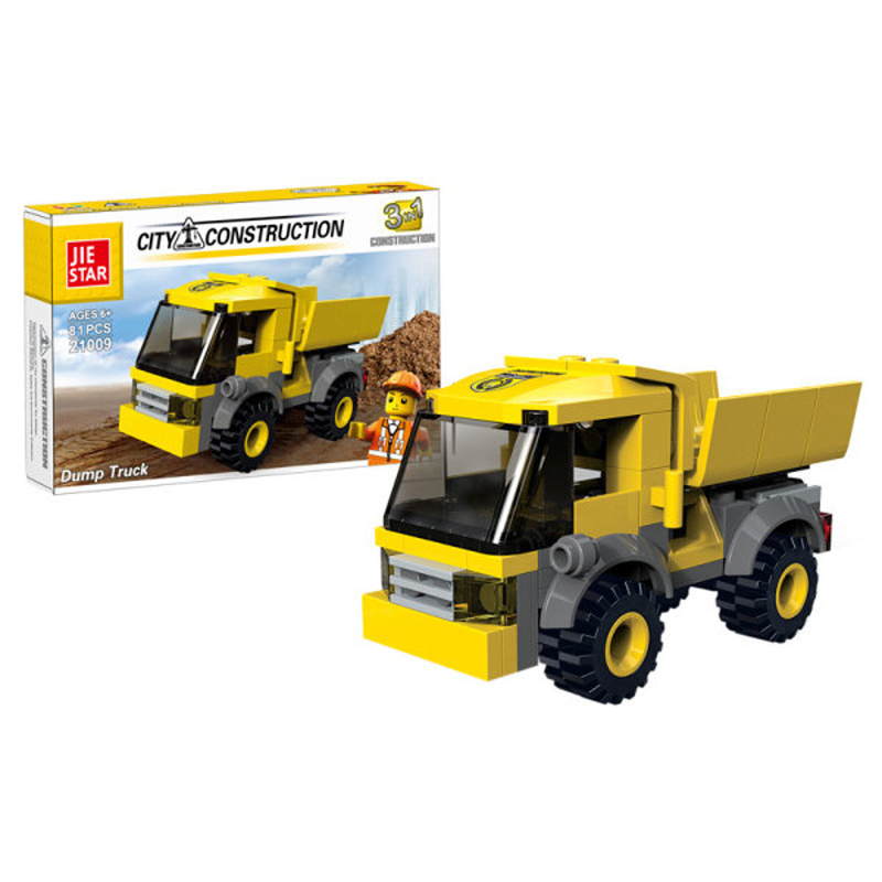 Bộ xếp hình Jie Star 21009 - Xe ben gồm 81 miếng ghép bằng nhựa an toàn, để bé ghép thành mô hình xe ben công trình dùng để chở vật liệu .... Đồ chơi lắp ráp giúp bé phát triển trí tuệ, tư duy cũng như khả năng sáng tạo, bé có thể xây dựng nên những câu chuyện của riêng mình.