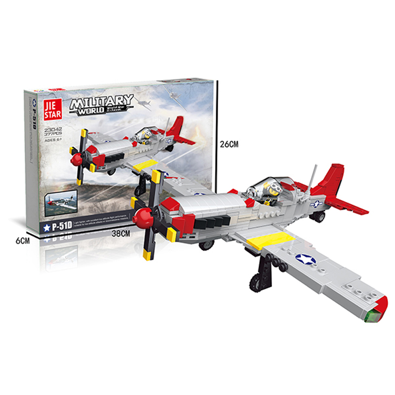 Bộ xếp hình Jie Star 23042 - máy bay P51D với chất liệu nhựa an toàn, gồm 377 mảnh ghép màu sắc, để bé ráp thành chiếc máy bay có người lái.... Đồ chơi lắp ráp giúp bé phát triển trí tuệ, tư duy cũng như khả năng sáng tạo, bé có thể xây dựng nên những câu chuyện của riêng mình.