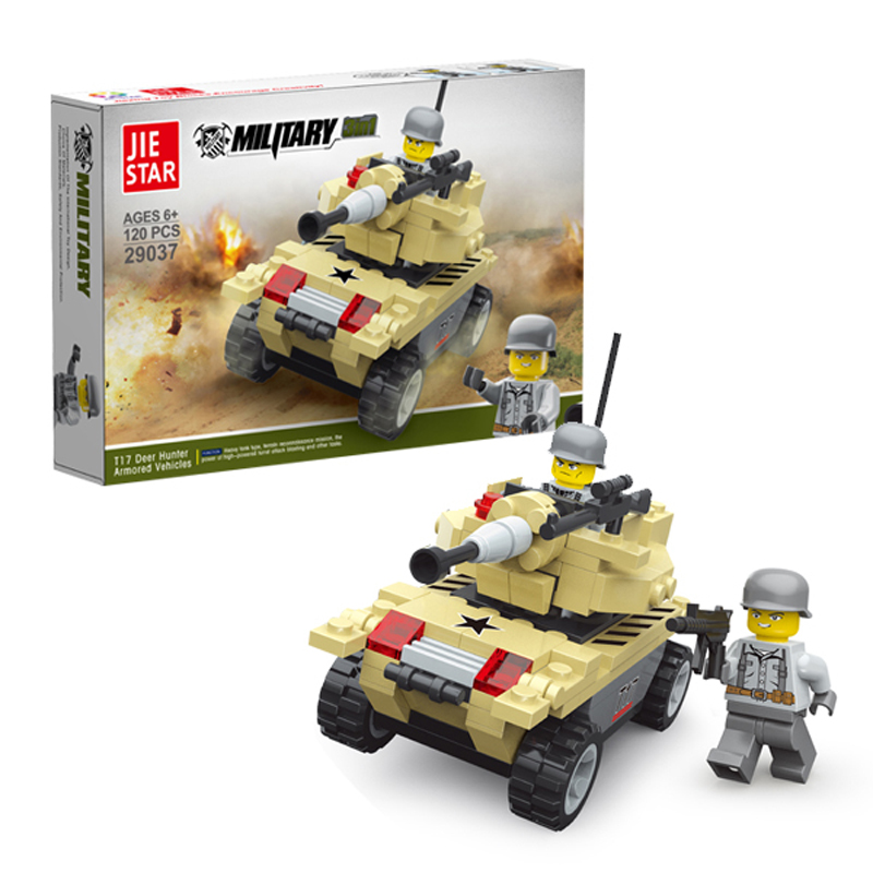 Bộ xếp hình Jie Star Military 29037 - Xe tăng gồm 120 miếng ghép bằng nhựa an toàn, để bé ghép thành mô hình xe tăng quân sự có 2 mô hình người.... Đồ chơi lắp ráp giúp bé phát triển trí tuệ, tư duy cũng như khả năng sáng tạo, bé có thể xây dựng nên những câu chuyện của riêng mình.