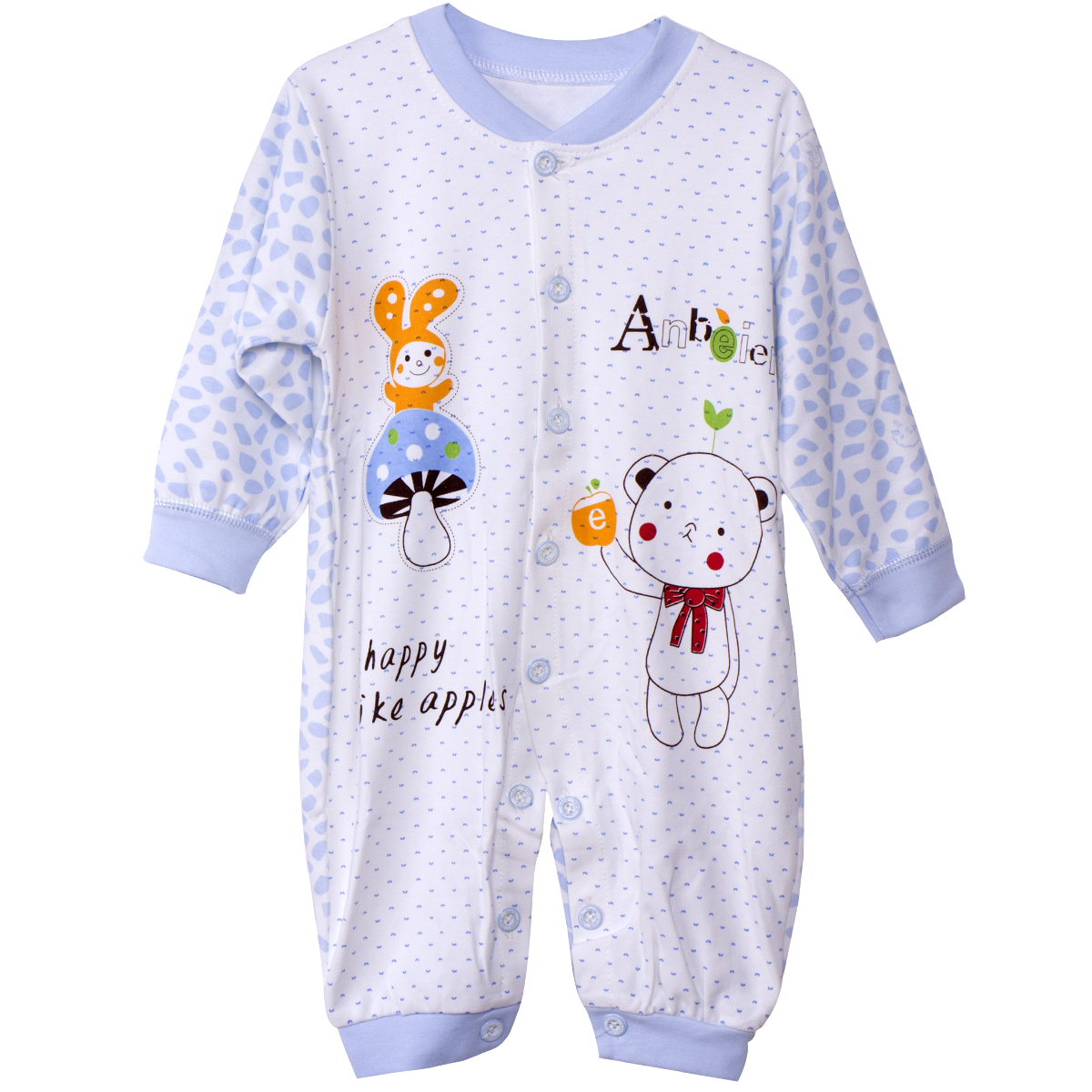 Thiết kế áo liền quần với cúc dọc thân giúp mẹ dễ dàng mặc cũng như cởi đồ cho bé.