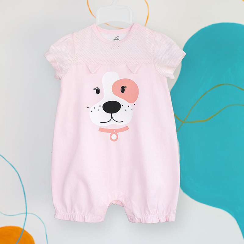 Body cộc cho bé với họa tiết in hình chú cún nổi bật trên gam màu hồng
