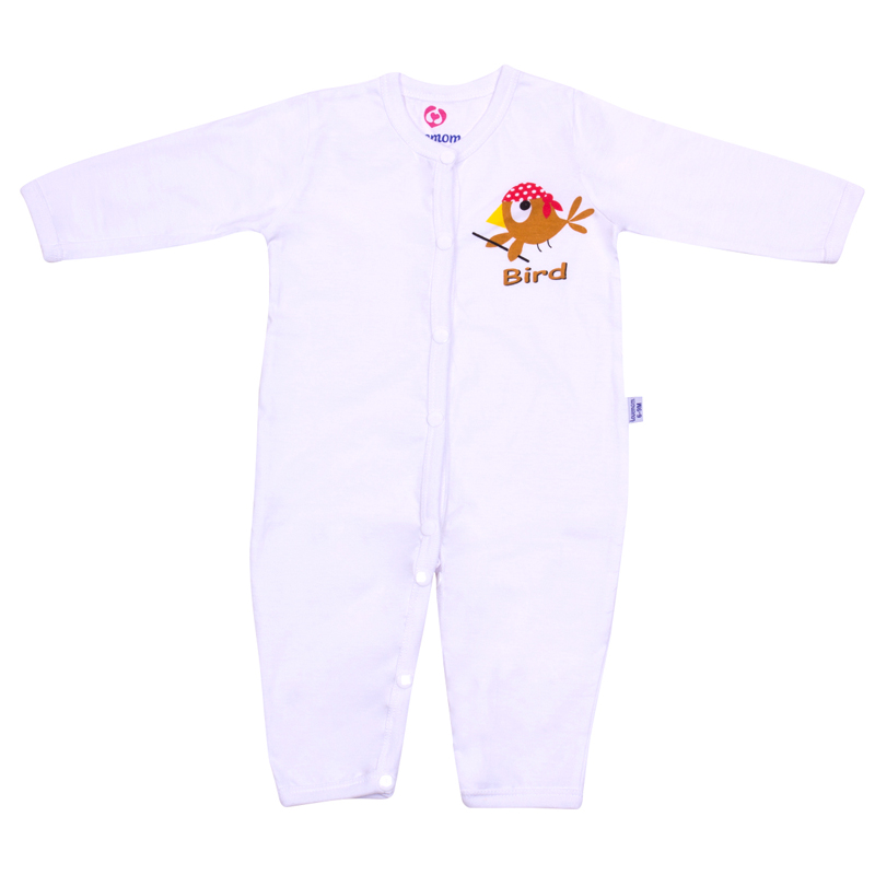 Body dài tay liền quần Lovemom (màu trắng) là kiểu body phù hợp cho bé mặc vào thời tiết Thu Đông. Body được may từ chất vải cotton mềm mại, không gây kích ứng cho làn da của bé. Body liền dài tay giúp bé thoải mái vận động mà không bị lạnh nhất là phần ngực và bụng của trẻ, khuy bấm ở đũng giúp mẹ dễ dàng thay bỉm cho trẻ mà không cần phải cởi hết đồ.