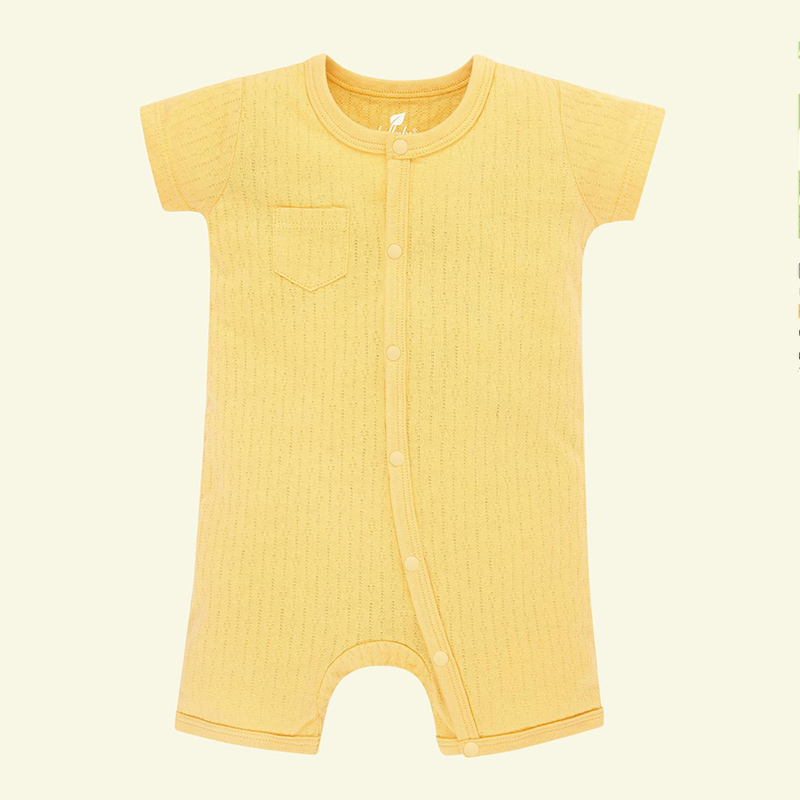 Body romper cộc tay bé trai Lullaby NH23B (vàng) với thiết kế khỏe khoắn kết hợp cùng chất vải 100% cotton mềm mại, thấm hút mồ hôi. Kiểu body với khuy bấm xuyên suốt từ cổ áo tới quần nên mẹ dễ dàng mặc cũng như thay bỉm cho trẻ.
