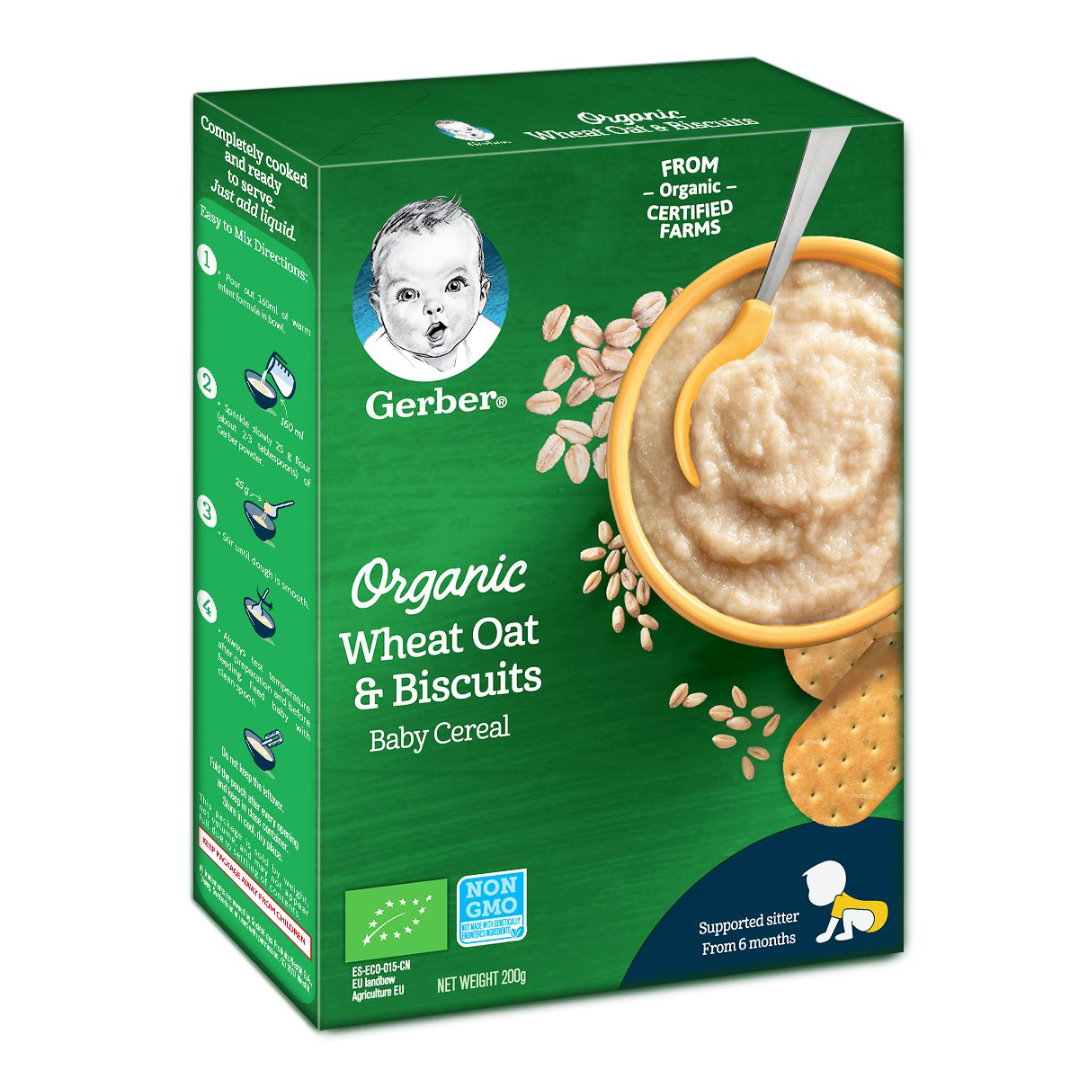Bột ăn dặm Gerber Organic vị lúa mì yến mạch bánh quy được nhập khẩu trực tiếp từ Tây Ban Nha giúp bổ sung nguồn năng lượng dồi dào cho cở thể bé. Bột ăn dặm Gerber là sự lựa chọn hoàn hảo cho các Bố Mẹ khi cho Bé ăn bởi vì sản phẩm có độ mềm và hương vị thơm ngon sẽ giúp kích thích vị giác của bé, giúp bé thèm ăn hơn