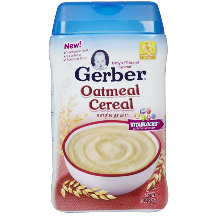 bột ăn dặm Gerber yến mạch Oatmeal Cereal single grain 227g dành cho trẻ từ 4 tháng tuổi trở lên. Với thành phần lý tưởng, bột ăn dặm Gerber cung cấp cho bé những dưỡng chất tối ưu nhất: sắt, kẽm, vitamin B6….Probiotic hỗ trợ hệ thống miễn dịch giúp bé luôn khỏe mạnh.
