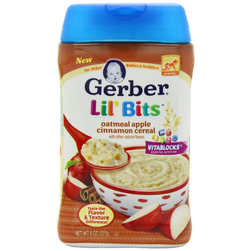 Bột ăn dặm yến mạch hương táo quế Gerber Lil' Bits có thành phần được làm từ tinh bột ngũ cốc hương táo quế cùng với sắt, kẽm, vitamin B, sẽ giúp cho con bạn bổ sung thêm đầy đủ các chất thiết yếu để phát triển toàn diện.