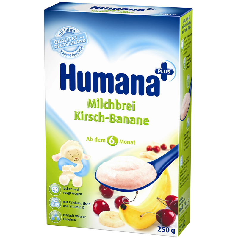 bột ăn dặm Humana Anh đào - Chuối được chế biến từ nguồn nguyên liệu chọn lọc, an toàn từ thiên nhiên, cung cấp đầy đủ các chất bột, đạm, béo, vitamin và khoáng chất, giúp trẻ có những bữa ăn an toàn và đủ dưỡng chất để tăng trưởng và phát triển cả thể chất và trí tuệ bằng một công thức dinh dưỡng dành riêng cho lứa tuổi ăn dặm nhất là các bé trên 6 tháng tuổi.